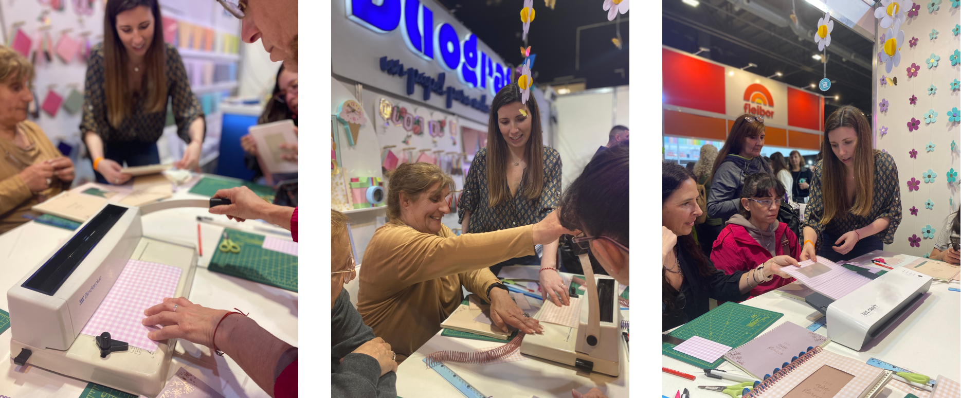 En la última edición de Expo Hobby (septiembre 2025) participé como invitada de Duograf, brindando un taller de encuadernación espiralada con sus papeles.